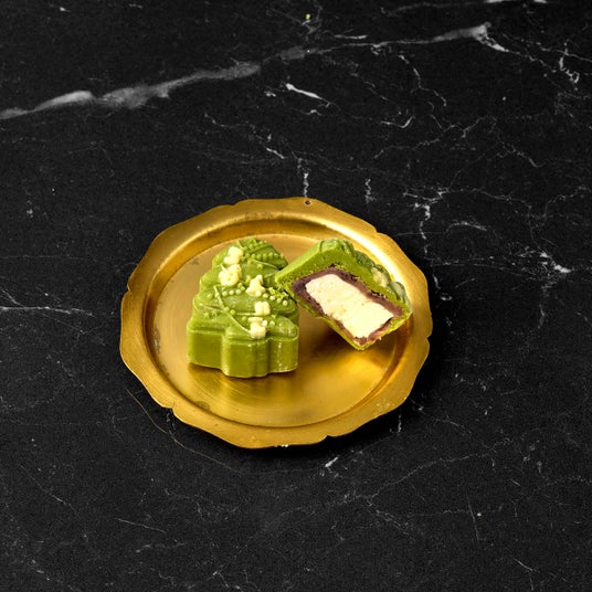 古くから漢方や薬膳にも使用されてきた緑豆を蒸し、バターや砂糖を加え、丁寧に裏ごしして作ります。あんこなどを包んだ緑豆ケーキは、上品な甘さとホロホロと崩れるような食感が特徴です。