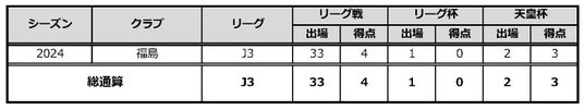 サッカー歴:VIENTO.SC→上州FC高崎→ベガルタ仙台ユース→びわこ成蹊スポーツ大→福島ユナイテッドFC