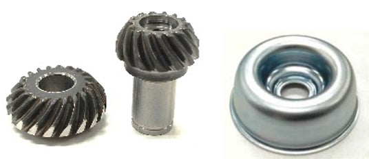絞り加工において、プレススライド内の油圧を用いて材料に背圧を加えながら成形することで材料の破断を抑制。通常2工程必要な加工を1工程で可能としました。まがりばかさ歯車において、冷間分流鍛造工法を行うことで低い荷重のまま材料の充填率を上げることができ、品質の向上、金型寿命の向上を実現しました。