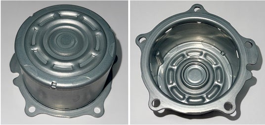従来、切削加工の代替は絞り加工が主流でしたが、部分的に厚さの異なる製品の加工は難しく、寸法精度にも問題がありました。今回新たに、潰し工程のみで製品を造る精密圧潰冷間プレス工法を開発。半導体パッケージ用放熱リッドやハイパワーLED用アルミニウムリフレクタの量産を可能にしました。