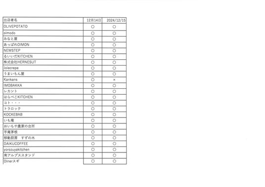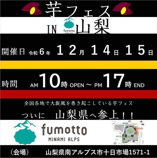 2024年12月14日-15日第1回芋フェス! in fumotto 山梨にて開催予定のフードイベントの出店者がついに発表された。
