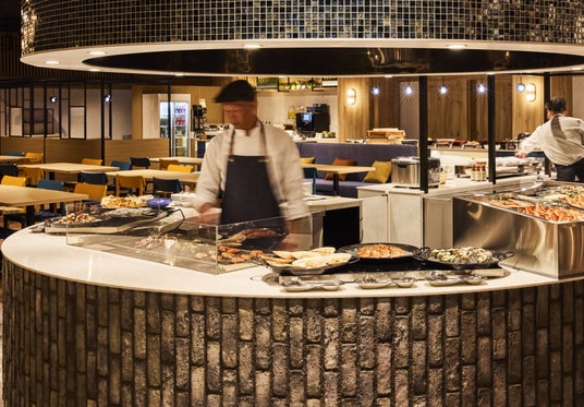 新鮮なサザエやホタテなどの浜焼き、ジューシーな国産牛ステーキはライブキッチンでご提供。目の前で調理される食材の香ばしい香りと音、そして出来立ての味わいをご堪能ください。