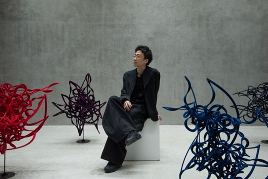 2021年9月と2022年3月にランウェイショーを開催、また、「LVMHプライズ 2022」のファイナリストに選出されるなど、これまでデザイナーとしてファッションシーンで活躍してきました。広島県生まれの岡崎は、生まれ育った街がもつ歴史と自然を感覚しながら制作します。自身にとっての作品作りは、その歴史と自然に敬意を表した儀式や祈願の行為に似ていると岡崎は語ります。ファッションやアート、枠組みにとらわれない岡崎の制作スタイルは、現代における新しいアートの可能性を見出します。