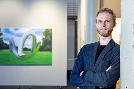 伝統的な絵画技法である油彩画とデジタル画像処理を組み合わせ、AIを使った写真の加工などにより、新たな視覚効果を生み出しています。エラーによって画像が抽象的な形に変化する過程に興味を持ち、リアリズムでありながらもシュールな表現を試みます。3Dプログラムで編集されたシミュレーションの空間や風景を扱い、広告のポートレートや雑誌からも着想を得て、デジタル時代の絵画とシミュレーションの概念に挑んでいます。