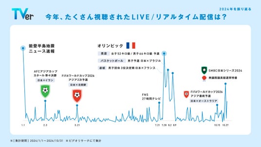※1:2024年1月1日~10月31日における、TVer単体のリアルタイム配信・追っかけ再生およびSPLIVEを合計した全デバイスでの動画再生数(ビデオリサーチにて算出)