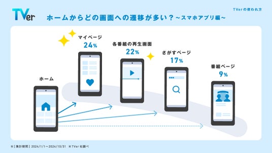 ※4:2024年1月1日~10月31日における、TVer単体のスマートフォンアプリ起動後の遷移数の割合(TVer社調べ)