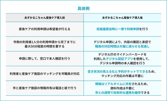 この取り組みを通じて、利用者が産後ケア事業にアクセスする手段を向上させ、登録者数や利用者数の増加を目指します。また、DXの取り組みを推進するために必要な留意点等の横展開をすることで、全国の地方公共団体等のDX、BPR※1を推進しています。
