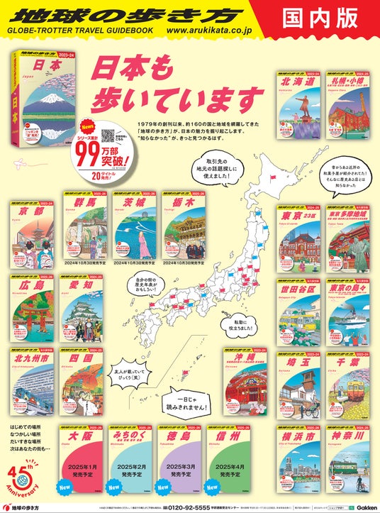 『地球の歩き方』の国内版は、2020年の『東京』を皮切りに、2024年12月までに20タイトルを発行。2024年10月に3タイトル同時発売した『群馬』『茨城』『栃木』は3冊とも発売前重版がかかるほどの話題に。2025年1月には『大阪』、2月に『みちのく』、3月に『徳島』、4月に『信州』を出版予定。国内シリーズのさらなる認知拡大のため、さまざまな広告展開を実施しています。