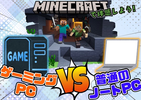 話題のマインクラフトの世界に「楢葉町」が登場します!ゲームで町を探索しながらゲーミングPCと普通のPCの性能比較を体験できます。