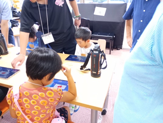 タブレットとペンを使ってお題を描き、お絵描き伝言ゲーム形式でデジタルアート体験が楽しめます。