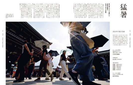 日本の気候が明らかにおかしくなってきていることは、誰もが肌で感じているはず。そこで列島に何が起こったのかを特集の冒頭にまとめています。 「2023年に続く、記録的な猛暑」「能登半島の豪雨」「日本列島の広範囲に被害をもたらした台風10号」。今もなお多くの方の被害が癒えていない災害が起きた2024年をふりかえります。