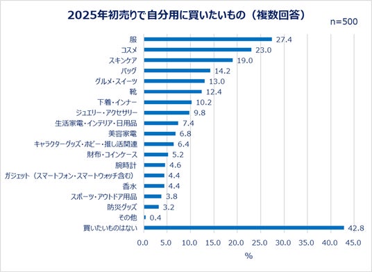 2025年初売りで自分用に買い物をする人は約6割。福袋は約4人に1人が購入予定