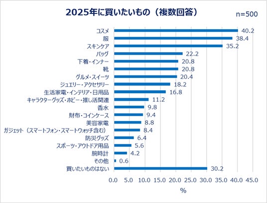 2025年の狙いアイテム1位「コスメ」2位「服」3位「ファッションアイテム」