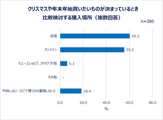欲しいものが決まっているとき、購入する場所によって価格が違ったり、確認できる情報量が違ったりということはしばしばあります。クリスマスや年末年始に自分用に買いたいものがある人を対象に、「どこで購入するか」も吟味するのか聞いたところ、8割以上の女性が吟味していることが分かりました。