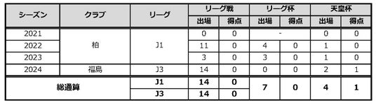 サッカー歴:FCアビリスタ→柏レイソルU-12→柏レイソルU-15→柏レイソルU-18→筑波大→柏レイソル→福島ユナイテッドFC