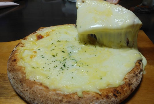 チーズの海に溺れたい!そんな思いで作った非常識なやりすぎのピザ。通常の3倍300gのチーズがトッピングされた外カリッ、中フワ、モチの絶品ピザ。チーズまみれになれる一品。