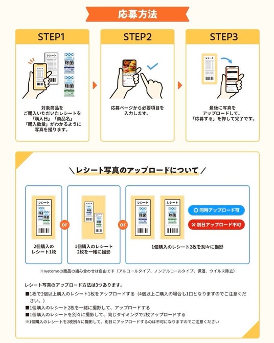 1. wetomoを2個購入し、その対象商品のレシートを撮影