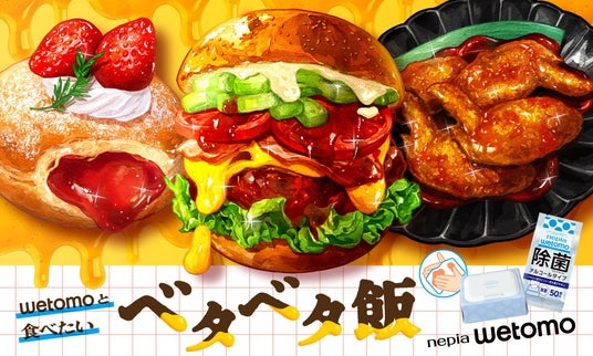 (※1)「ベタベタ飯」とは、手がベタベタになるけどおいしい一品のことで、wetomoをお供にベタベタ飯を食べることで、気兼ねなく楽しんでほしいという想いが込められています。