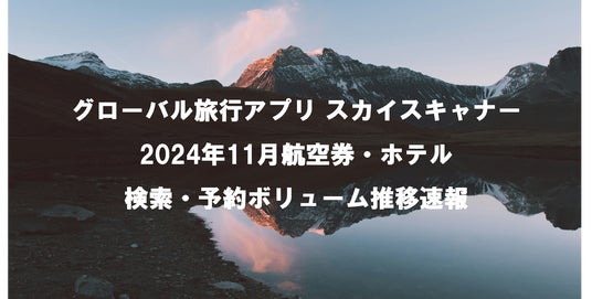 世界中の航空会社・旅行会社・ホテルなど約1,200の旅行パートナーから最適な旅行プランを提供する” グローバル旅行アプリ” Skyscanner Japan株式会社(本社:東京都港区、以下スカイスキャナー)は、2024年11月における航空券・ホテルの検索・予約ボリューム推移速報を発表しました。