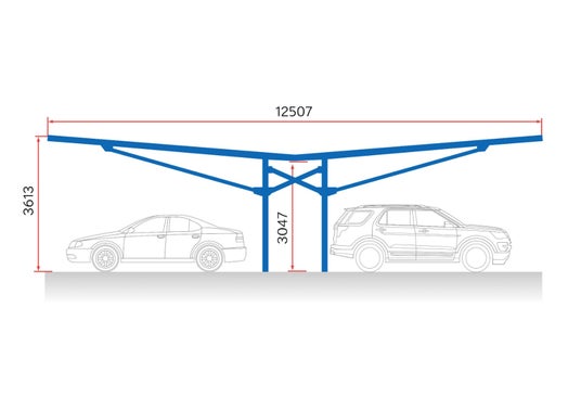 ▶ハイルーフにも対応可能な最大高3.6mハイルーフタイプの車でも軒先が視界に入らず見通しが良い事も特徴です。特にホームセンターなどでは長い資材の搬入時にソーラーカーポートが邪魔になりません。