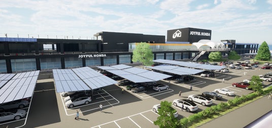 ジョイフル本田は2025年までにCO2排出量43%削減(2013年度比)*5を目標に掲げ、カーボンニュートラルに向けた取り組みを進めています。2022年にはカーボンマイナスを目指す次世代型店舗の構築に向けて、全店舗への屋根上太陽光発電設備の導入を決定し推進してきました。一方、屋根上だけではCO2排出削減目標には不十分という課題があり、PPAによる更なる再エネ導入を検討した結果、既存の土地を有効活用できるソーラーカーポート、中でも発電量やデザイン性、商業施設への導入実績などの観点からしろくまカーポートをご評価いただき、この度の協業に至りました。