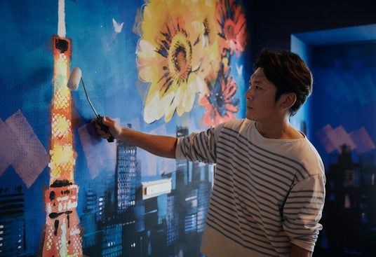 パークホテル東京は、ホテル客室の壁に直接絵を描いた「アーティストルーム」の最新作で第 43 室目となるアーティストルーム「ミッドナイトトーキョー」を2024年12月13日(金)より販売開始いたします。 本アーティストルームは、さとうたけし氏が「東京の夜景と四季」をテーマにペイントローラーを用いて制作いたしました。ミッドナイトブルーの都会の夜景と四季折々の花々が交錯するこの空間は、このアーティストルームに訪れる全ての方々に刺激と癒しが共存する特別な体験を提供します。