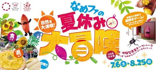 白ハト食品工業株式会社(本社:大阪府守口市、代表:代表取締役社長 永尾 俊一)が運営する、体験型農業テーマパーク らぽっぽ なめがたファーマーズヴィレッジ(所在地:茨城県行方市宇崎1561)では、2024年7月6日(土)~8月25日(日)に「なめファの夏休み大冒険!」を実施いたします。アクセスは東京駅から車で約 90 分です。