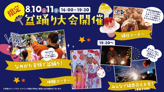 毎年恒例!なめファの校庭で盆踊りを開催します。当日は縁日コーナーに体験コーナー、みんなで線香花火大会などもお楽しみいただけます。