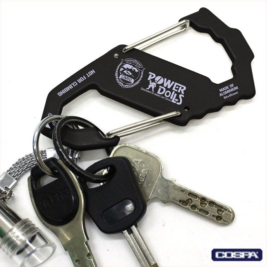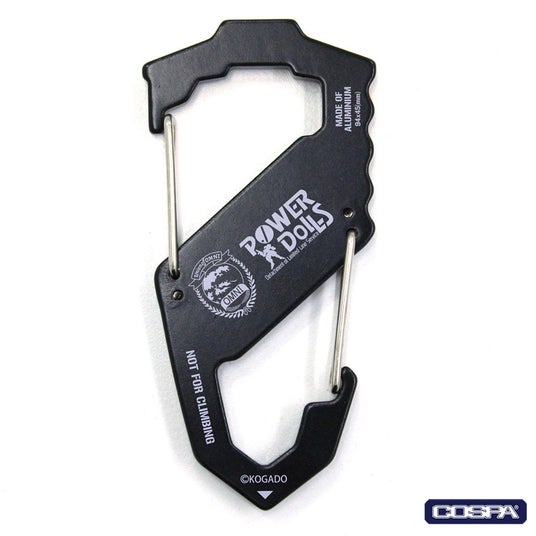 オムニのエンブレムをデザインしゲーム内世界での備品風に仕上げたオリジナルのアルミ製S型カラビナ。