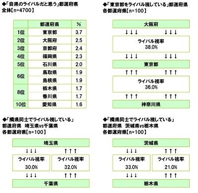 ◆「埼玉県」vs「千葉県」、「茨城県」vs「栃木県」、「山梨県」vs「静岡県」、「富山県」vs「石川県」、「鳥取県」vs「島根県」はお互いにライバル視