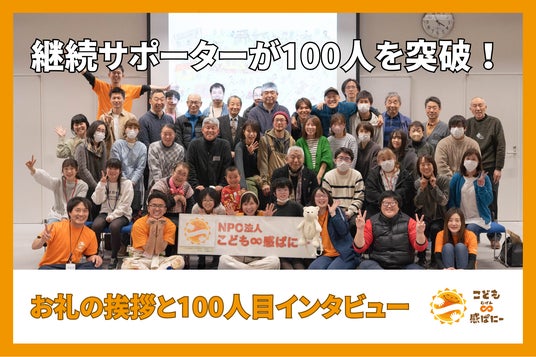 認定NPO法人こども∞感ぱにーでは、2024年10月に継続サポーターが100人を突破しました。