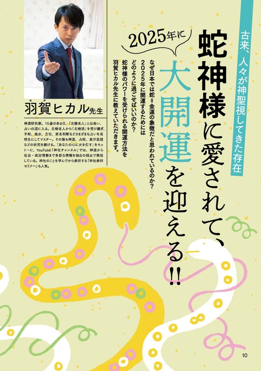 SNS総フォロワー25万人・今をときめく神道研究家【羽賀ヒカル】さんが、蛇神様に愛されて大開運を迎える術を伝授