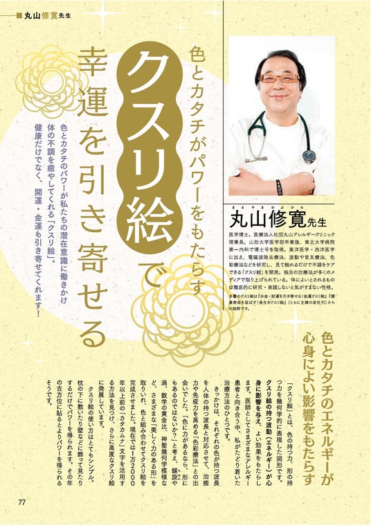 医学博士【丸山修寛】さん監修の「クスリ絵」も掲載。色と形が不思議なパワーをもたらすので見ているだけで健康になって、金運もアップ!