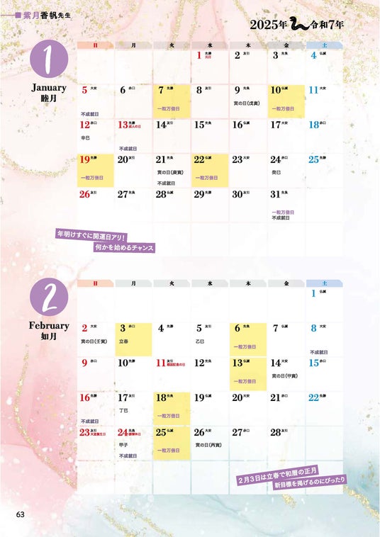 紫月さんが、東洋の暦に基づいた、2025年365日の開運日を教示してくださいます。毎日チェックしましょう。