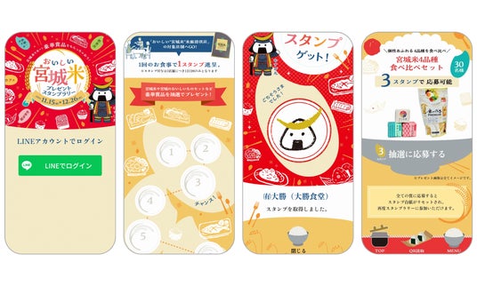 対象飲食店の活性化はもちろんのこと、宮城米を参加者に食べてもらうことで美味しさの周知につながる企画となっております。キャンペーン画面はお米をイメージしたこだわりのデザインになっており、賞品としても宮城米を提供することで、宮城米の魅力がより伝わるように工夫されています。