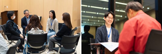 左:ゲストとの座談会の様子 / 右:個別相談会の様子