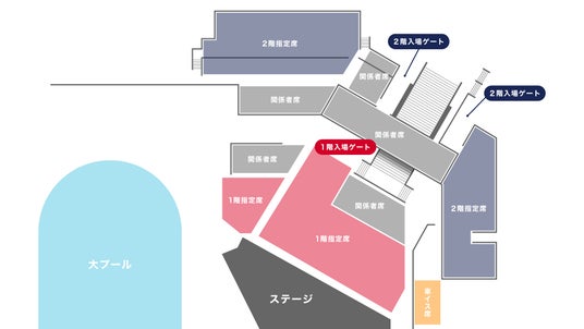 ※新体制発表会の観覧チケットをお持ちで、事前にスパリゾートハワイアンズをご利用いただいている方も、一度外に出ていただき待機列にお並びください。