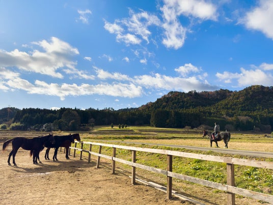 美しい里山の中で、乗馬体験や乗馬レッスン、ホーストレッキング、ホースマンシップ講習、ホースセラピーなど、馬に初めて触れる方から経験者の方まで楽しむことができます。