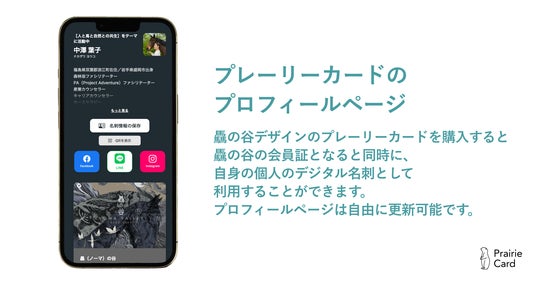 「驫の谷」でプレーリーカードを購入すると、会員権として自身が選んだ驫の谷オリジナルデザインがプレーリーカードに印刷され、「驫の谷」の会員証となると同時に、個人のデジタル名刺として利用することができます。この仕組みにより、会員同士のつながりを深めるとともに、外部へのコミュニティ認知を広げる新たなツールとして機能します。