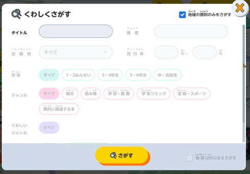 「Yomokka!」では主に参加出版社の電子書籍を掲載していますが、「Yomokka!」をご契約中の自治体や学校で作成した副読本や、地域の郷土資料といった出版社から刊行されていないコンテンツも掲載することが可能です。掲載されたコンテンツは「Yomokka!」を利用している全国すべてのユーザーが読むことができます。また詳細検索にて「地域の資料のみをさがす」にチェックを入れ、簡単に検索することができます。複数冊を用意することが難しい資料も「Yomokka!」に掲載することで、手軽にクラス全員で読むことができるようになります。