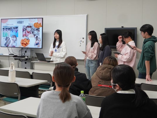 当日は、両大学の学生がそれぞれの大学や学科の紹介を行った後、班ごとに「どのようなスポーツ選手を対象に、どの年代を想定したメニューを作るか」をテーマに調理実習を実施しました。学生たちは英語でコミュニケーションをとりながら、それぞれのオリジナルメニューを作成。ある班では野球をしている30歳男性向けのメニューを作り、トレーニング後でも食べやすいことを意識した料理を作成しました。「食べやすかった」「さっぱりしていた」といった感想が出るなど、充実した活動となりました。