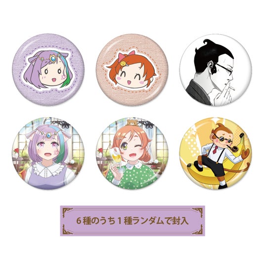 ランダム缶バッジです。マオの館忘年会&クリスマス会限定ビジュアル3種、どこかで見たことあるデザイン3種の全6種。