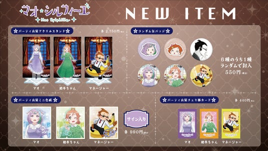 その「マオ・シルフィーユOfficial Store」にて、マオの館忘年会&クリスマス会限定ビジュアルの新オリジナルグッズ10点を12月14日より販売開始いたします。