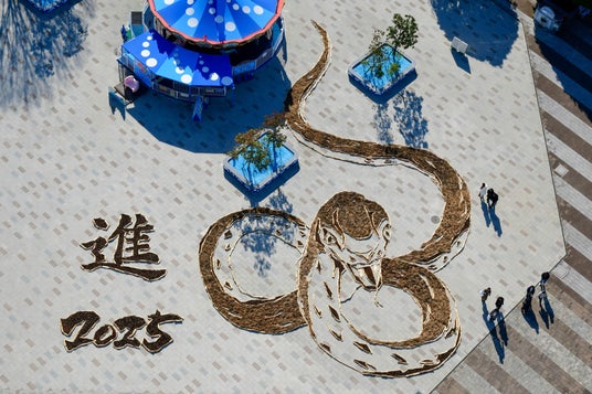 当公園の冬の風物詩である「干支の巨大地上絵」が12月14日(土)から公開されます。今回のテーマは「夢や目標に向かって進む大蛇」。蛇は脱皮を繰り返しながら成長し、新たな姿に生まれ変わることから、再生や変化の象徴とされています。このことから今回の地上絵のデザインでは“無限(∞)の可能性”を表現しています。