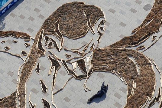干支の巨大地上絵 仕上げ作業中(撮影日:2024年12月14日)