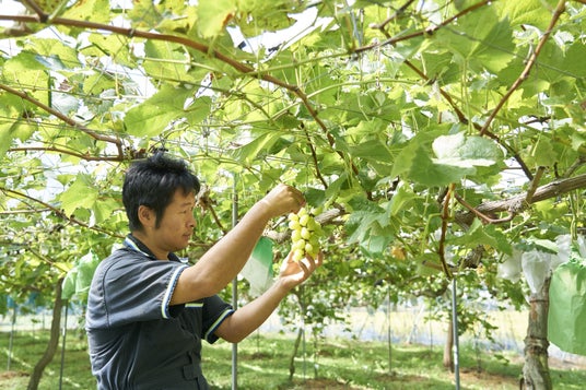 当園ではビニールハウスがなくても栽培可能な品種のぶどうを扱っており、十年ほど前から雨よけの屋根のみの露地栽培をしています。もともとは早い時期から出荷するためにハウス栽培をしていたのですが、出荷時期を後ろにずらしても十分に売れると判断し、切り替えました。ハウス内の温度を保つための石油や重油を使用しなくなったことで温室効果ガスの削減につながっていますし、重油代が高騰するなかでコストの削減にもなっています。