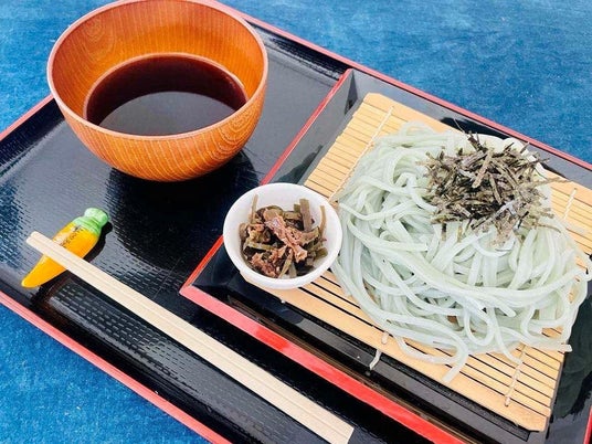 ・鮮やかな藍色と、生麺のような食感が特徴の、のど越しの良い米粉麺です。