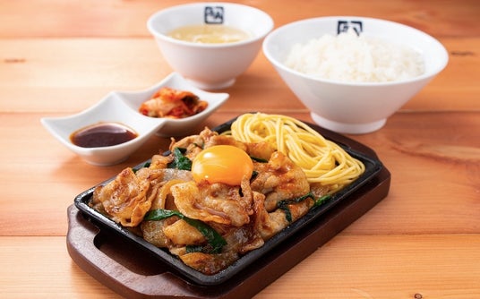 にんにく醤油ダレを使用したやみつき感のある焼肉定食。卵黄やニラと合わせると思わずごはんが進みます
