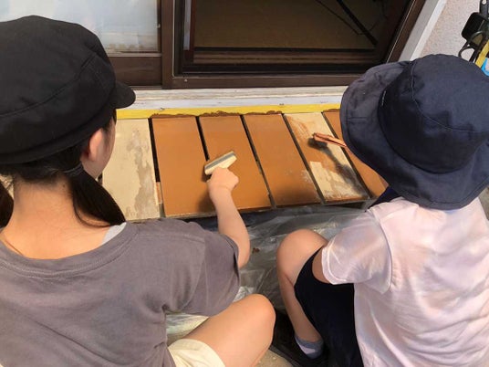 ベースのDIYも自分たちで(縁側を修繕する様子)