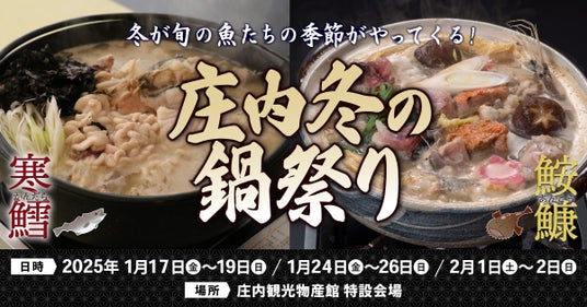 株式会社庄交コーポレーション(所在地:山形県鶴岡市、代表取締役:近藤 司)が運営する土産物専門店「庄内観光物産館」は、「寒鱈祭」を 2025年1月17日(金)~19日(日) , 1月24日(金)~26日(日), 2月1日(土)~2日(日) の日程で、「あんこう鍋祭」を 2025年2月22日(土)~24日(月) の日程で開催いたします。